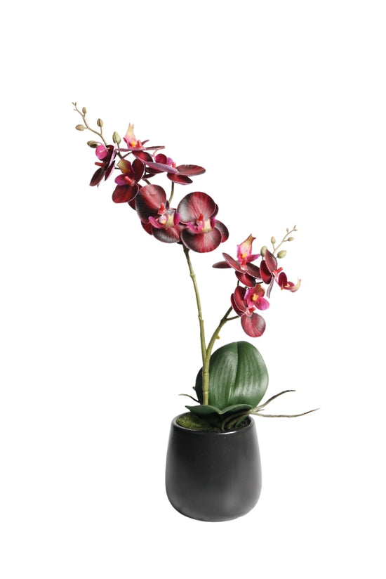 SP 267S Dk Red Phalaenopsis Orchids w/Ceramic Pot 41cm Real Touch Dark Red Phalaenopsis with...