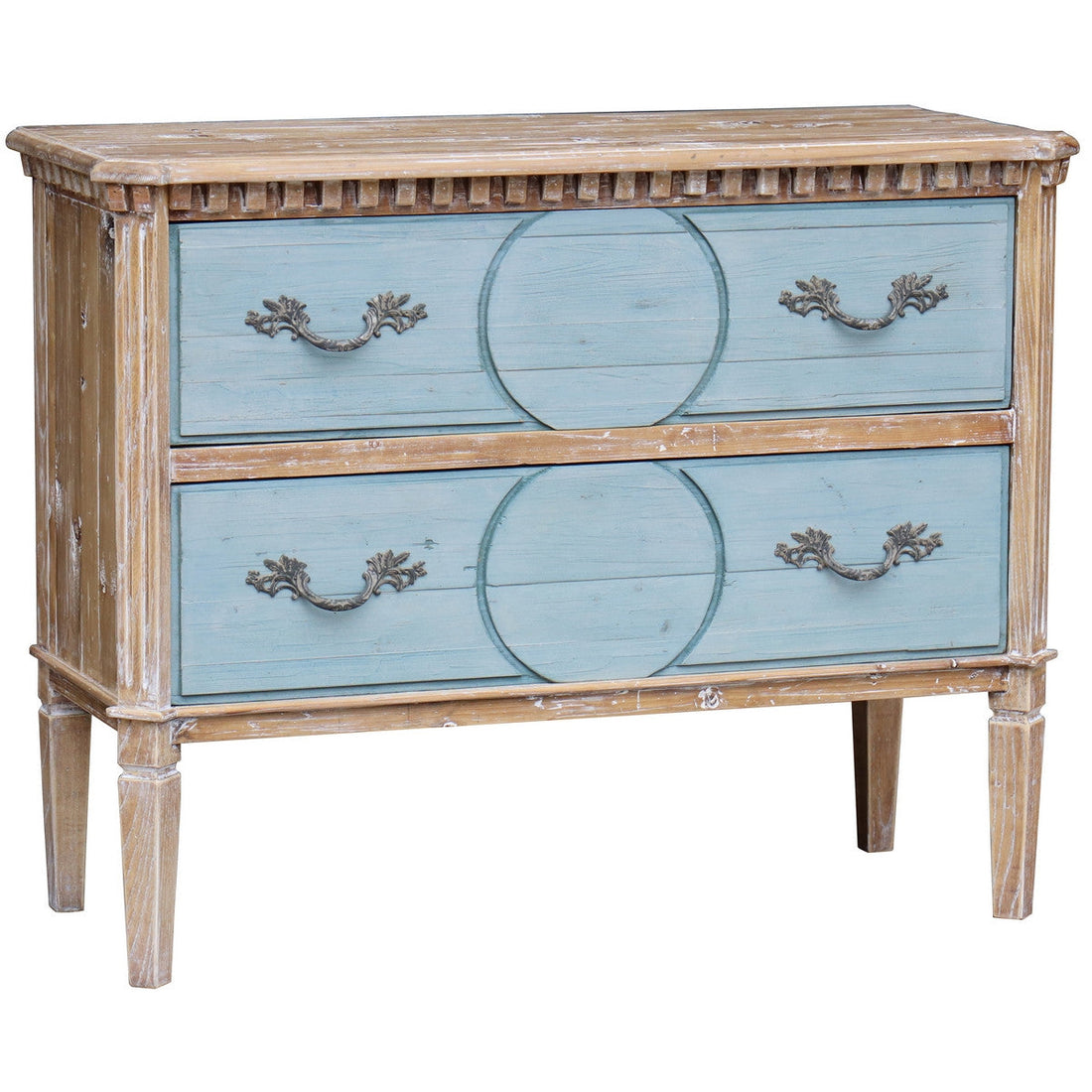 FUNCTIONALITY MEETS EARTHY DESIGN WITH THIS FRENCH COUNTRY SEA-SALT BLUE, 2 DRAWER CHEST. THE OLD PINE...