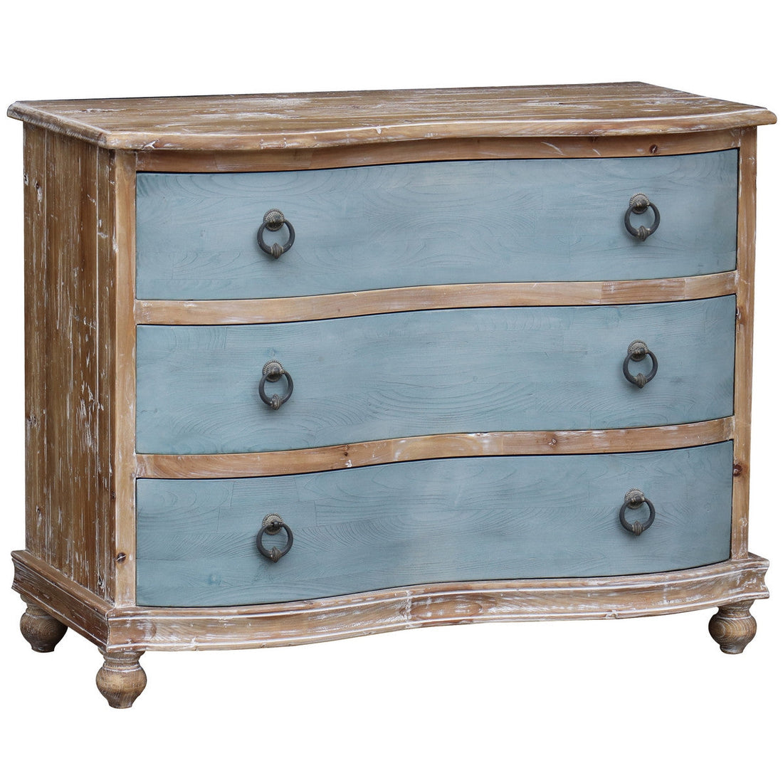 FUNCTIONALITY MEETS EARTHY DESIGN WITH THIS FRENCH COUNTRY SEA-SALT BLUE, 3 DRAWER CHEST. THE OLD PINE...