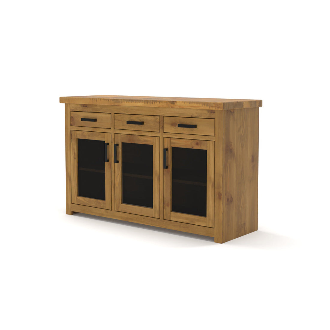 The Marlborough 3 Door Buffet features a rustic roughsawn top and tinted glass doors for a look...