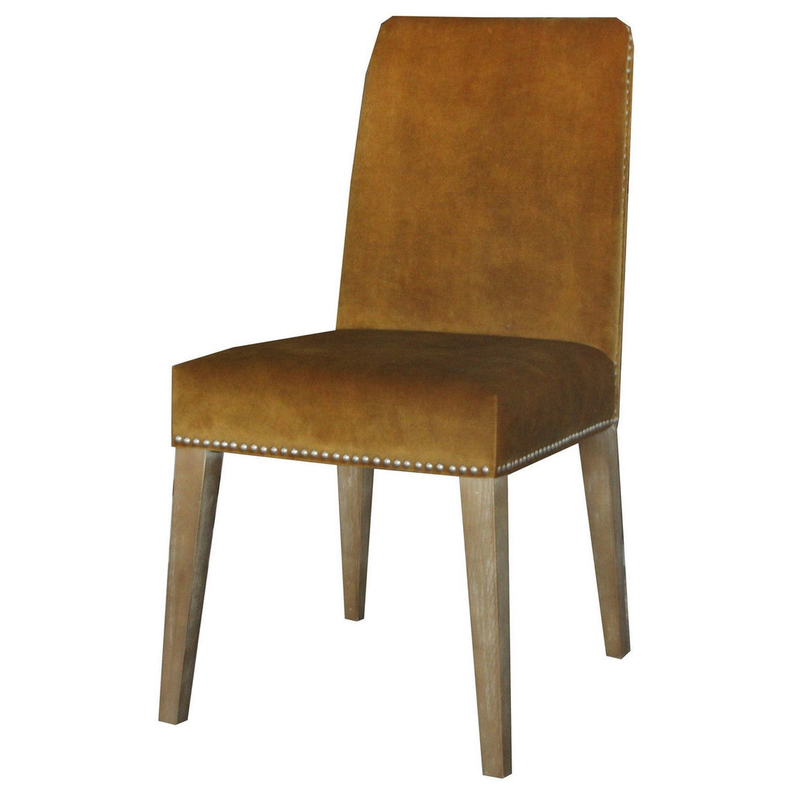 Description: Pascal Dining Chair Velvet with Antique Studs Size (LxWxH): 490x620x820 Colour: Dark Mustard , Grey...