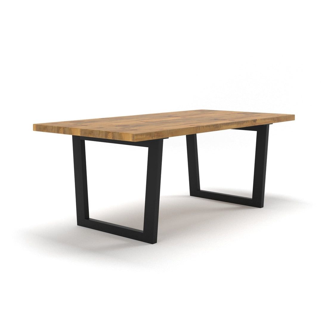 The Marlborough Dining Table features a rustic roughsawn top, supported by solid black legs which offset the...