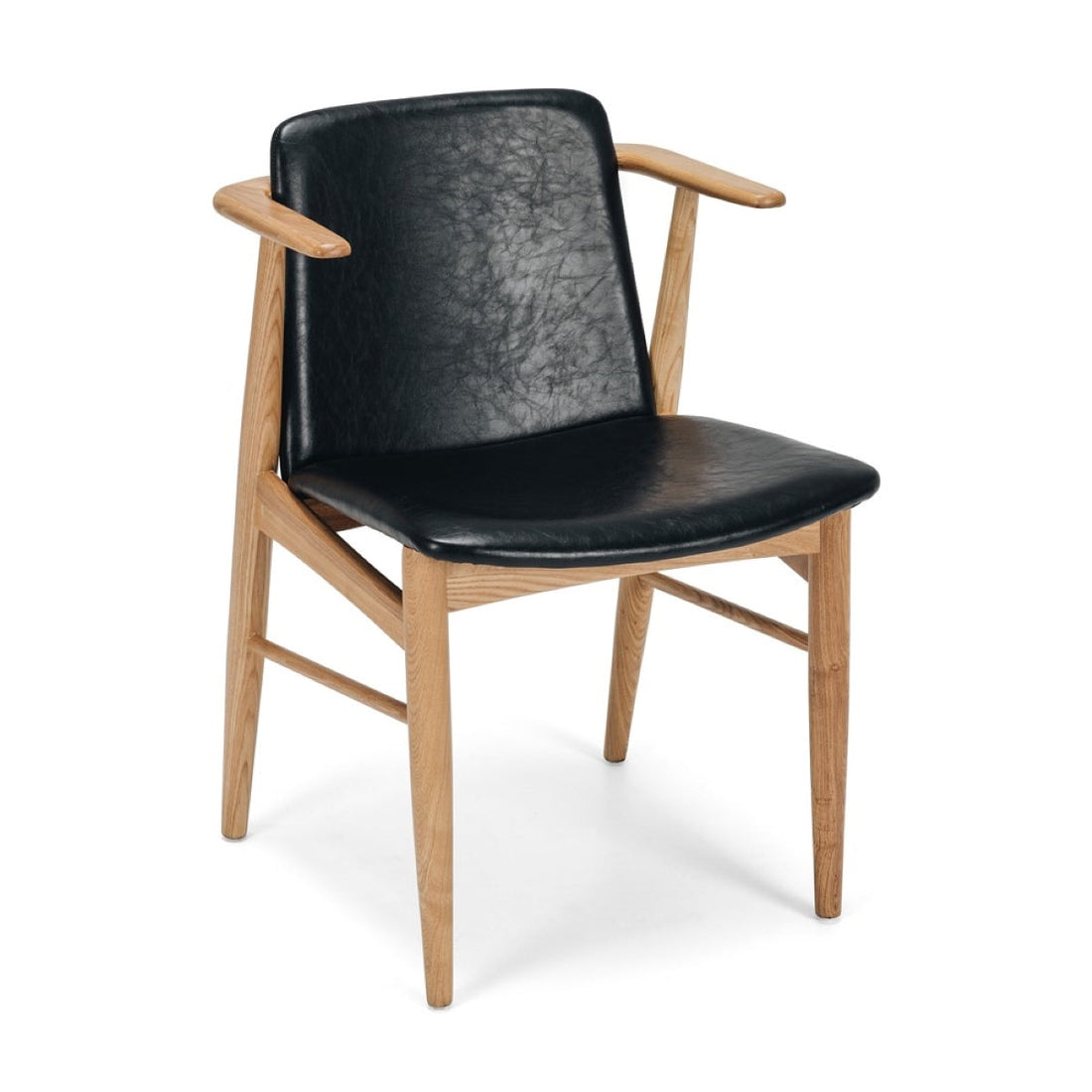 Style: Midcentury Replica Timber: Deep Oak Colour: Black PU Seat Construction: Solid Oak frame with a durable semi-gloss finish, PU...