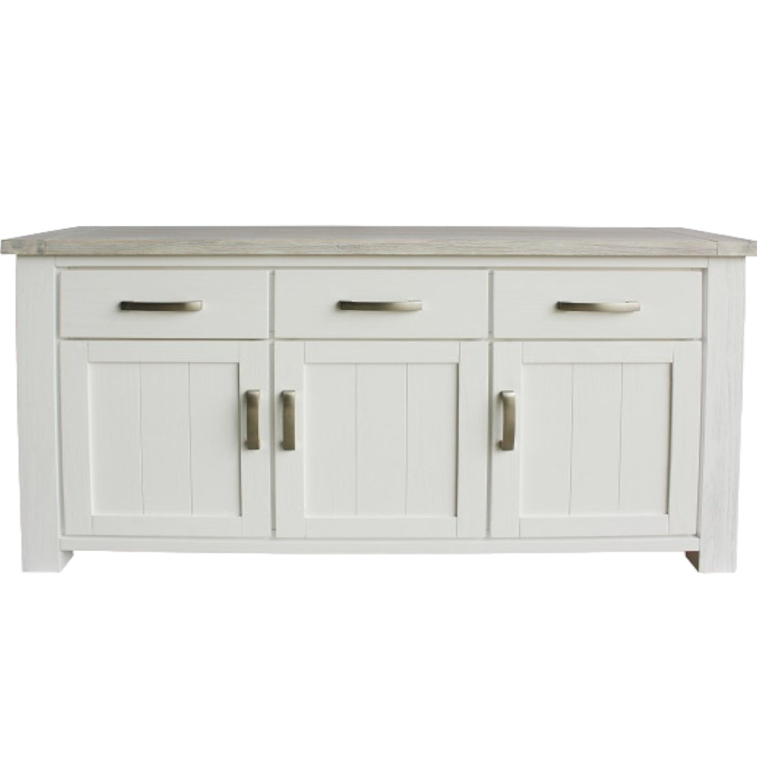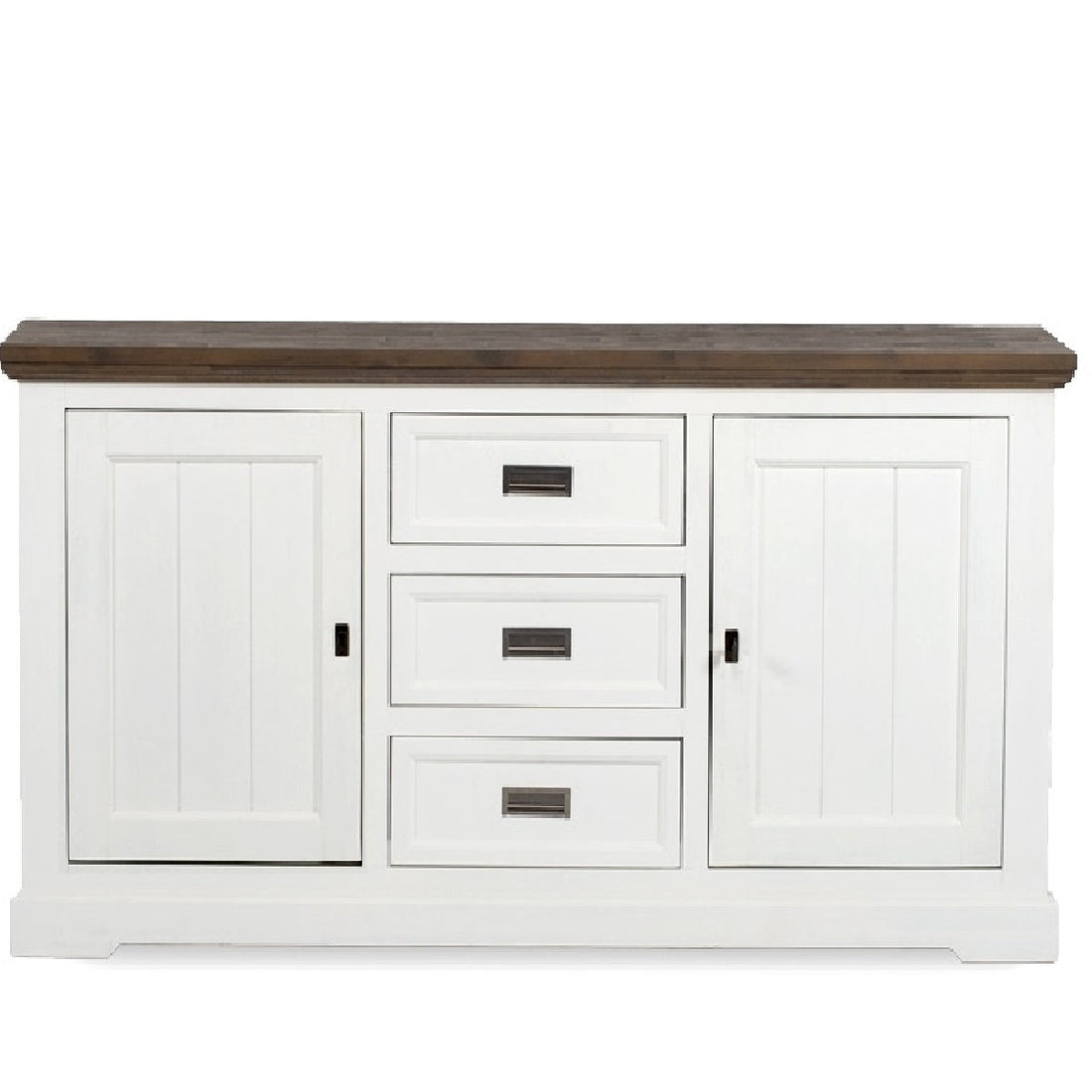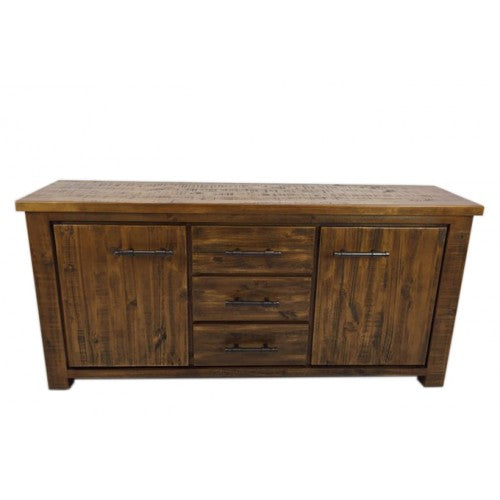 The Marlborough 3 Door Buffet features a rustic roughsawn top and tinted glass doors for a look...