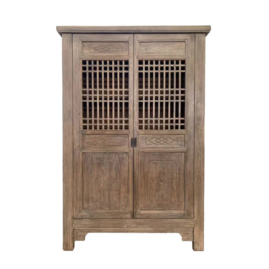 Harvest Carved 2 Door Showcase Cabinet Reclaimed Elm – Display Cabinet (CN8006)