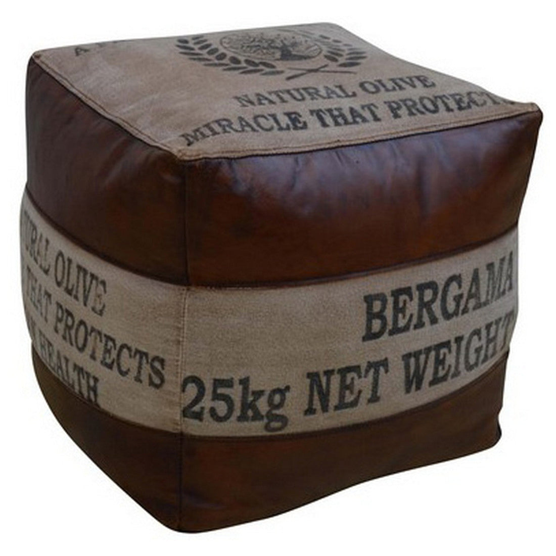 Description Leather Pouf earthy and tribal, this leather pouf will add an old world touch...