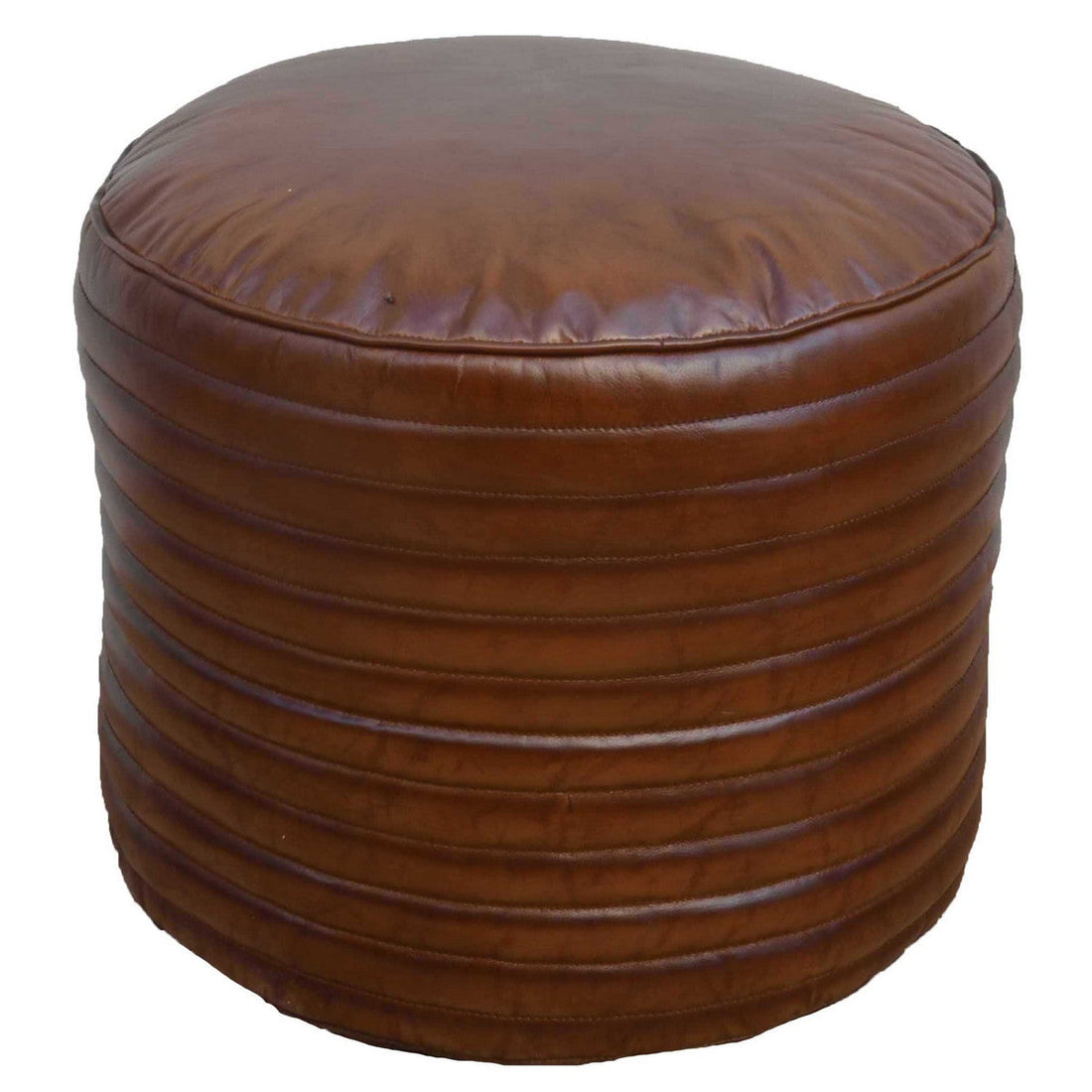 Detailed Description THIS CIRCLE LEATHER POUF BRINGS AN EARTHY, RUSTIC FEEL TO ANY LIVING AREA....