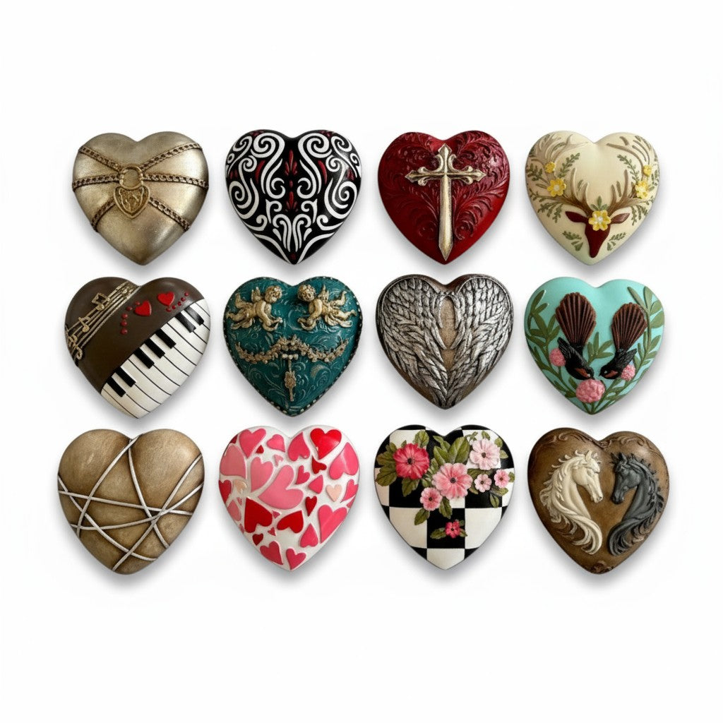 Add a touch of charm to any space with this collection of assorted hearts, each measuring 13 cm. Featuring a variety of unique designs, these hearts offer something to suit every style and mood. Perfect for decorating, gifting, or collecting, they bring warmth and personality wherever they go.