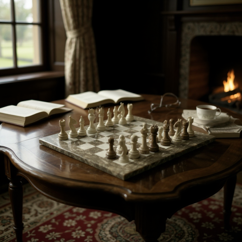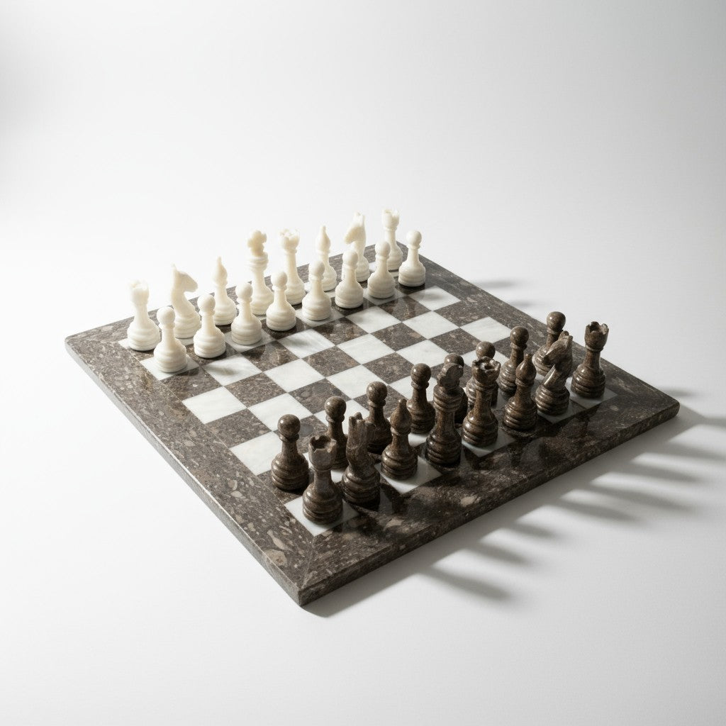 12" Fossil /White Marble Chess Set (FGCS12B)