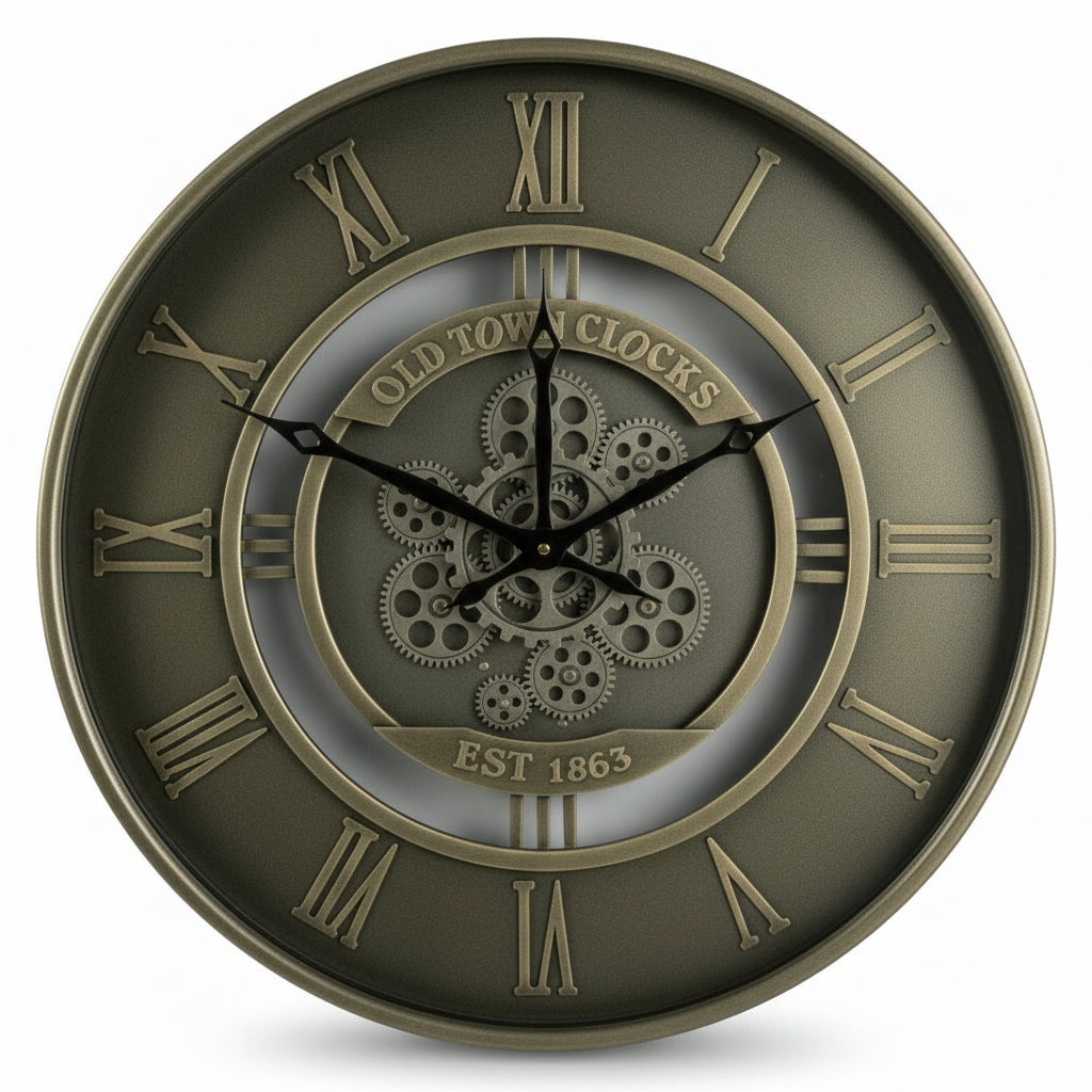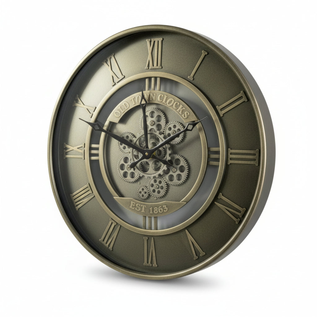 Experience industrial sophistication with the Gunmetal Gear Clock. This 60cm diameter showstopper features a sleek gunmetal finish paired with stunning silver gears that catch the light beautifully. Bold Roman numerals frame the intricate mechanical display, creating an undeniably classy steampunk aesthetic. Built with quality craftsmanship throughout, it's designed to impress and endure. Perfect for loft spaces, creative studios, or anywhere you want to celebrate mechanical elegance, this timepiece merges form and function into one captivating statement. A refined choice for those who appreciate industrial design with genuine character.