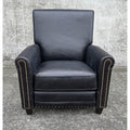 Crafted from premium South American full top grain cow leather, the Chatswood 1 Seater Recliner delivers timeless style and exceptional comfort. Its traditional design, accented with brass nail detailing, adds a refined, classic touch—perfect for living rooms, offices, or entertainment spaces. Built with high-quality materials and sprung for comfort, this recliner is made to look amazing and last.