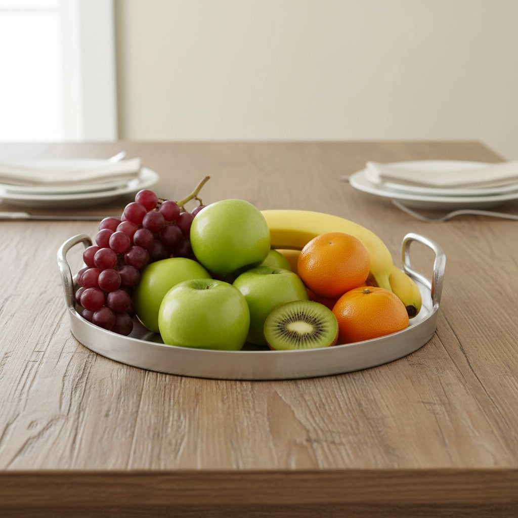 Aluminium Round Collar Tray 32cm Raw Silver (ME983664-RS)