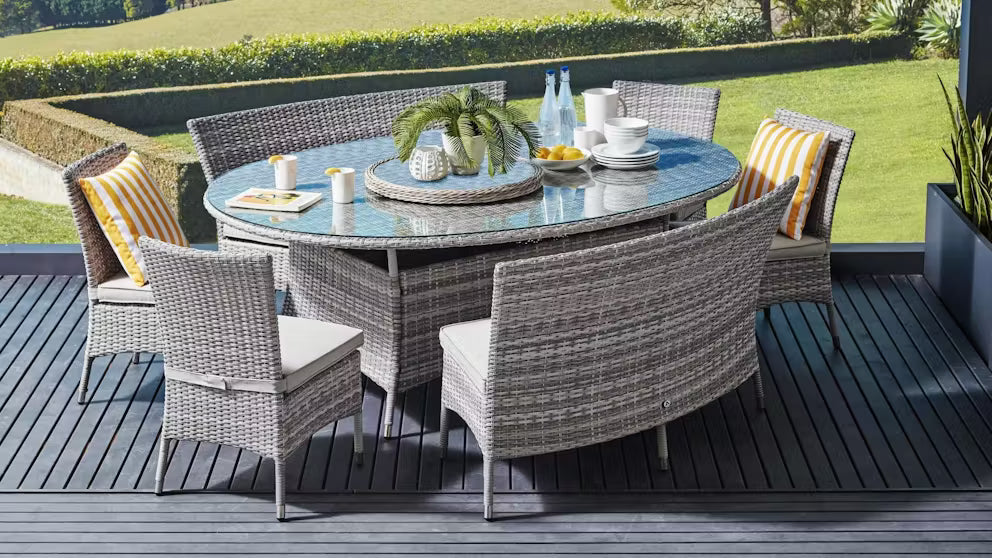 Host unforgettable outdoor gatherings with the Amalfi 8-Piece Dining Set, designed for comfort, style, and durability. Crafted with a strong aluminium frame and weather-resistant resin wicker, this elegant oval set is made to withstand New Zealand’s seasons.