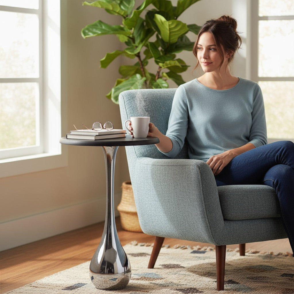 Sophisticated and timeless, the Arlo Side Table combines a sleek polished nickel frame with a luxurious dark grey marble top. Its minimalist form and premium materials make it a perfect accent for modern or classic interiors alike — ideal beside a sofa, armchair, or bed. 🖤✨