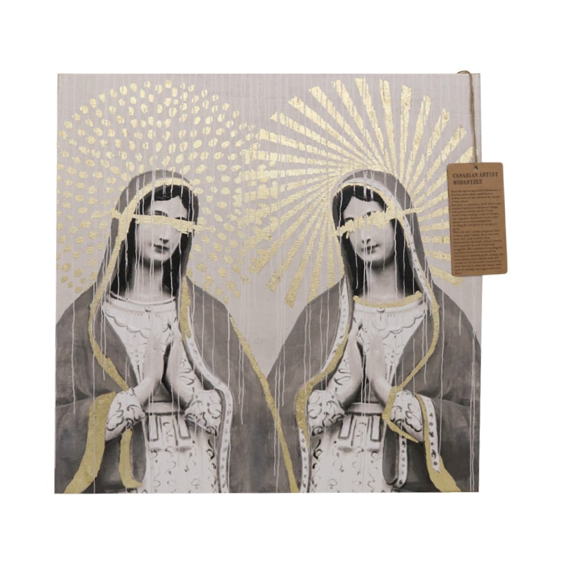 | Composition | Hand Embelished Cotton Canvas + Gold Foil Side + Artist Bio |