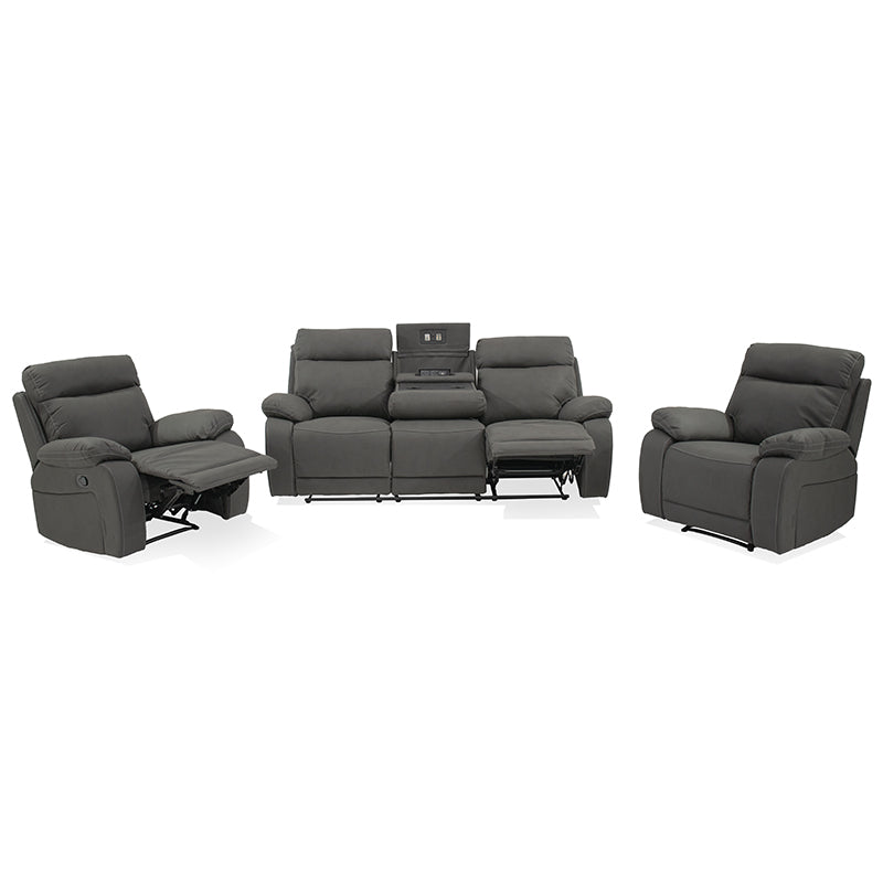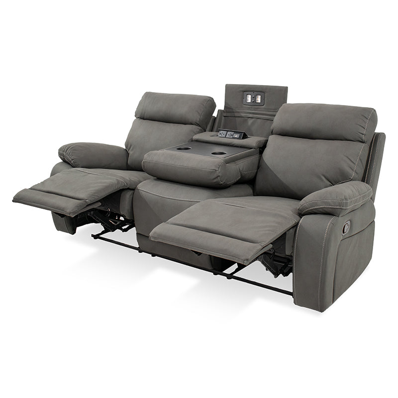 Upholstered in soft, smooth Rhino Luxe thick fabric, the Atlanta Lounge Suite offers a luxurious feel and stylish look. The built-in recliners allow you to extend your legs for the ultimate relaxation, while the high-density foam seat cushions ensure maximum comfort. The 3-seater features an entertainment console with reading lights, USB charging ports, and electric plugs to keep your devices powered and within easy reach.