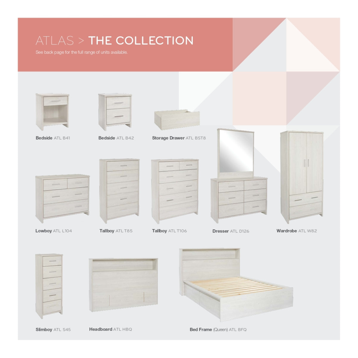 The Atlas Collection is a true head-turner, designed to elevate any room with its clean, contemporary lines and practical features. Whether you're refreshing your bedroom or furnishing a new home, Atlas offers style, functionality, and exceptional quality.