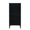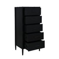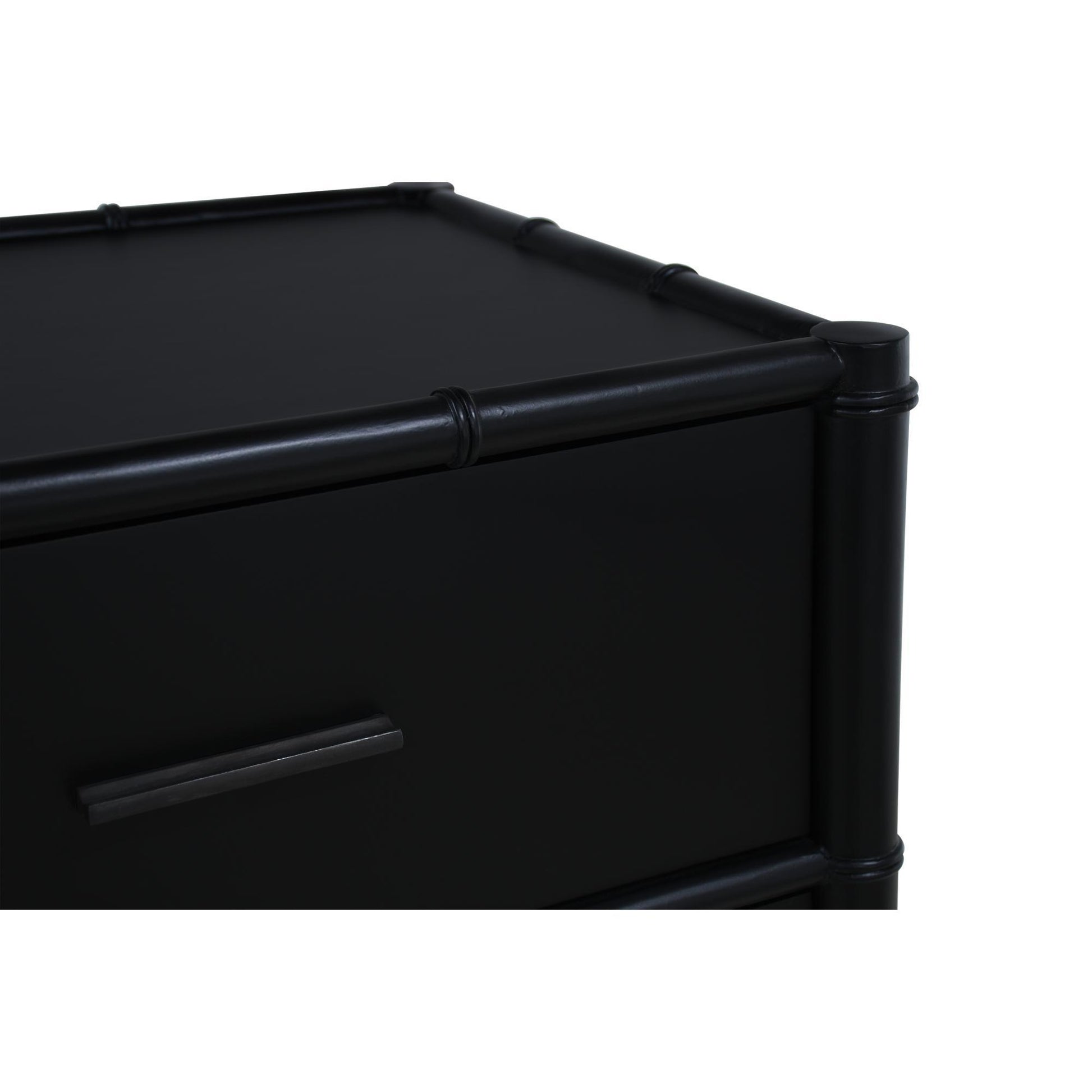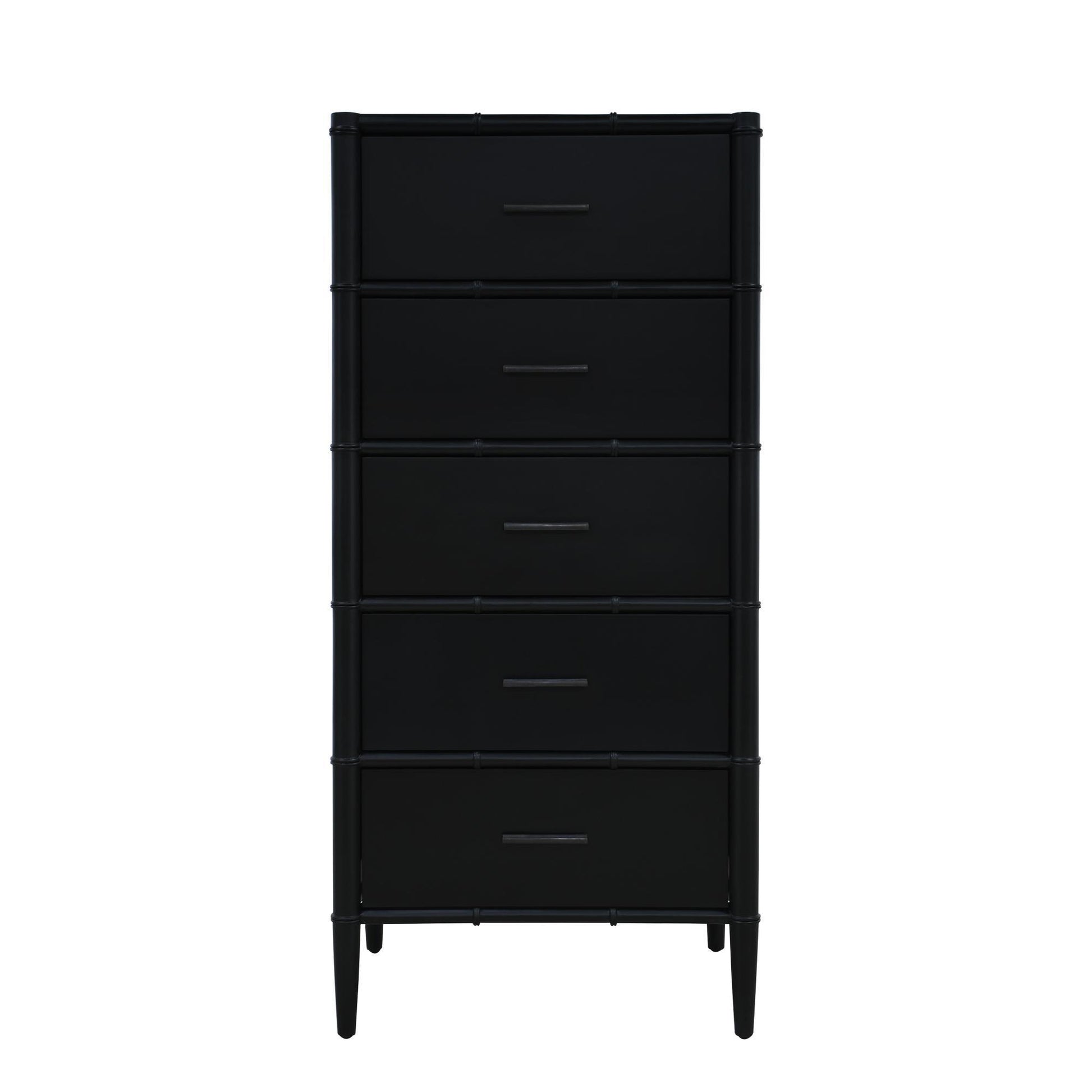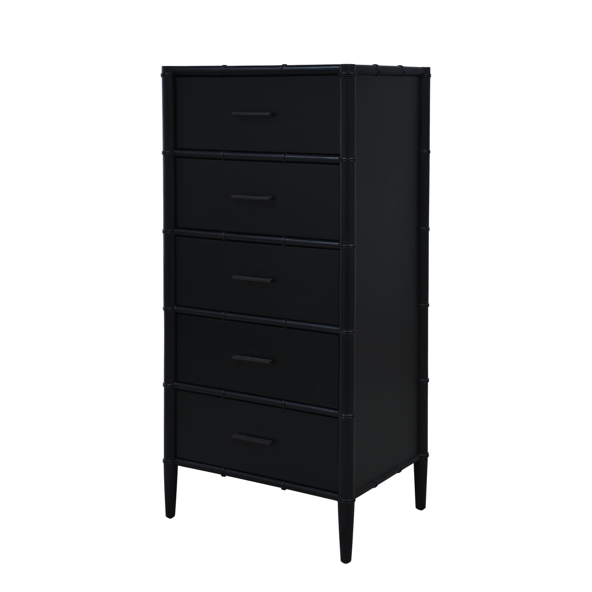 Add sleek, vertical storage to your space with the Bamboo Tallboy. Featuring five spacious drawers, this piece is perfect for bedrooms, hallways, or compact areas needing stylish storage. Crafted from durable mango wood and plywood in a bold black finish, it offers both practicality and a modern look.