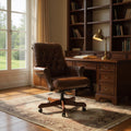Bring heritage style and timeless comfort into your workspace with the Bankers Chair in rich Vintage Cigar leather. Inspired by early 20th-century designs and elevated with an industrial edge, this adjustable office chair pairs the warmth of timber, the strength of metal, and the luxury of hand-finished top grain leather. It’s a standout piece for any office, study, or reception space.