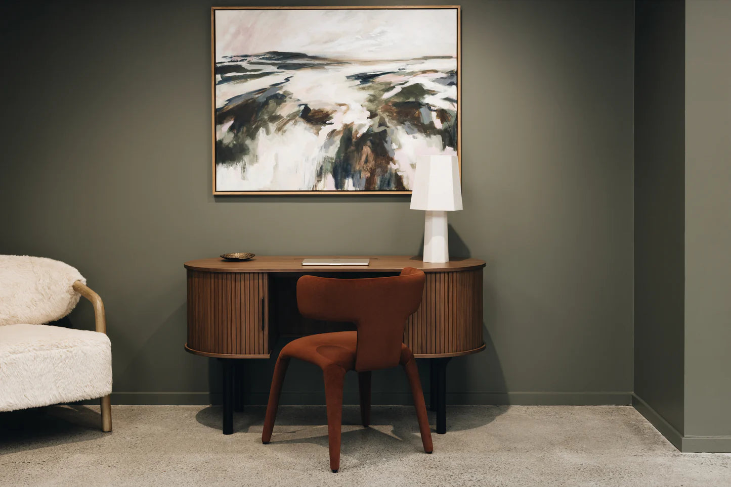 Sculptural wrap-around backrest for supportive comfort 🤍