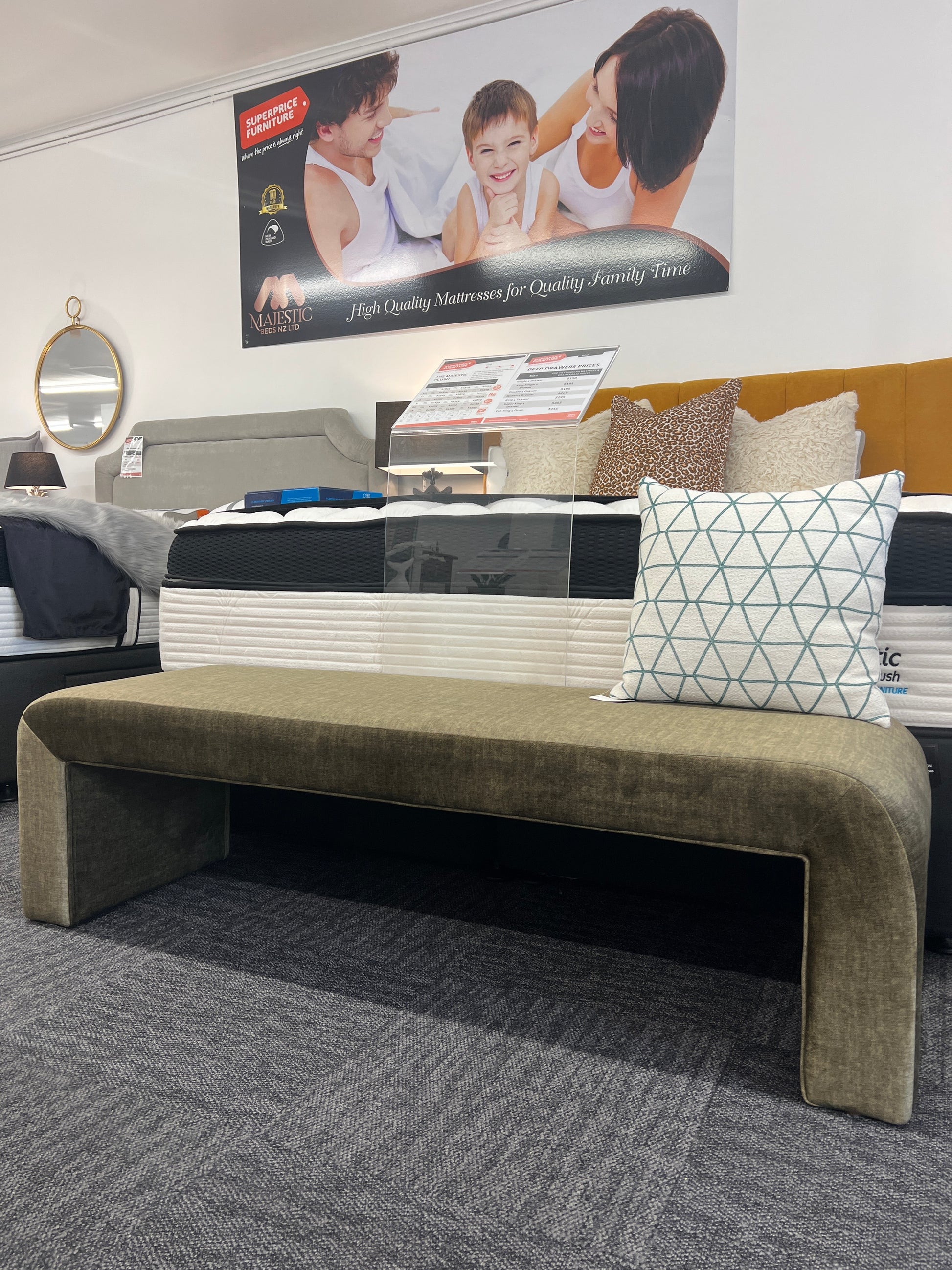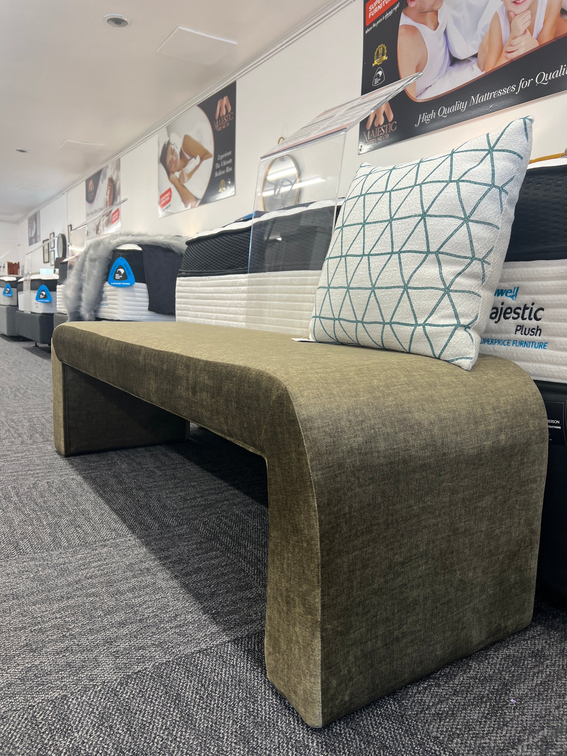 Enhance your space with the Beatrice Bench Seat, a perfect blend of style and comfort. Upholstered in a luxurious olive-green polyester fabric, this bench adds a sophisticated touch to any room. The plush 28D foam cushioning ensures superior comfort, while the sturdy plywood frame provides lasting durability.