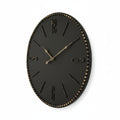 Elevate your interior with this sophisticated Black With Gold Numbers Clock. Its commanding 60cm diameter makes a bold statement, while the striking contrast between the deep black face and gleaming copper-gold studs creates an undeniably regal aesthetic. Roman numerals add timeless elegance, perfectly blending industrial edge with luxury appeal. Ideal for those seeking a classy upgrade to their décor, this showstopper works beautifully in modern lofts, executive offices, or contemporary homes. A refined timepiece that transforms any wall into a focal point of style and distinction.