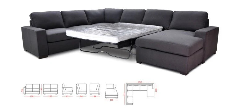 Experience versatility, comfort, and style with the Bronson Corner Suite with Sofa Bed by John Young. Designed for modern living, this large corner lounge offers the perfect blend of spacious seating and practical functionality — featuring a pull-out sofa bed for guests and a chaise for everyday relaxation.