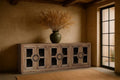With its generous 2260mm width, the Byron Sideboard offers ample storage through a combination of drawers and cupboards, making it perfect for organising dining essentials, household items, or décor. The inclusion of glass elements adds a refined touch, balancing its solid, rustic presence with a lighter, more contemporary feel.