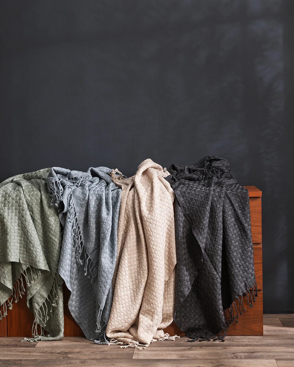 Snuggle into the cozy comfort of the Capri throw in a soft sage shade 🌱. Its basketweave wool-blend texture is perfect for adding a touch of calm elegance and warmth to any bedroom or living space 🛋️🛏️.
