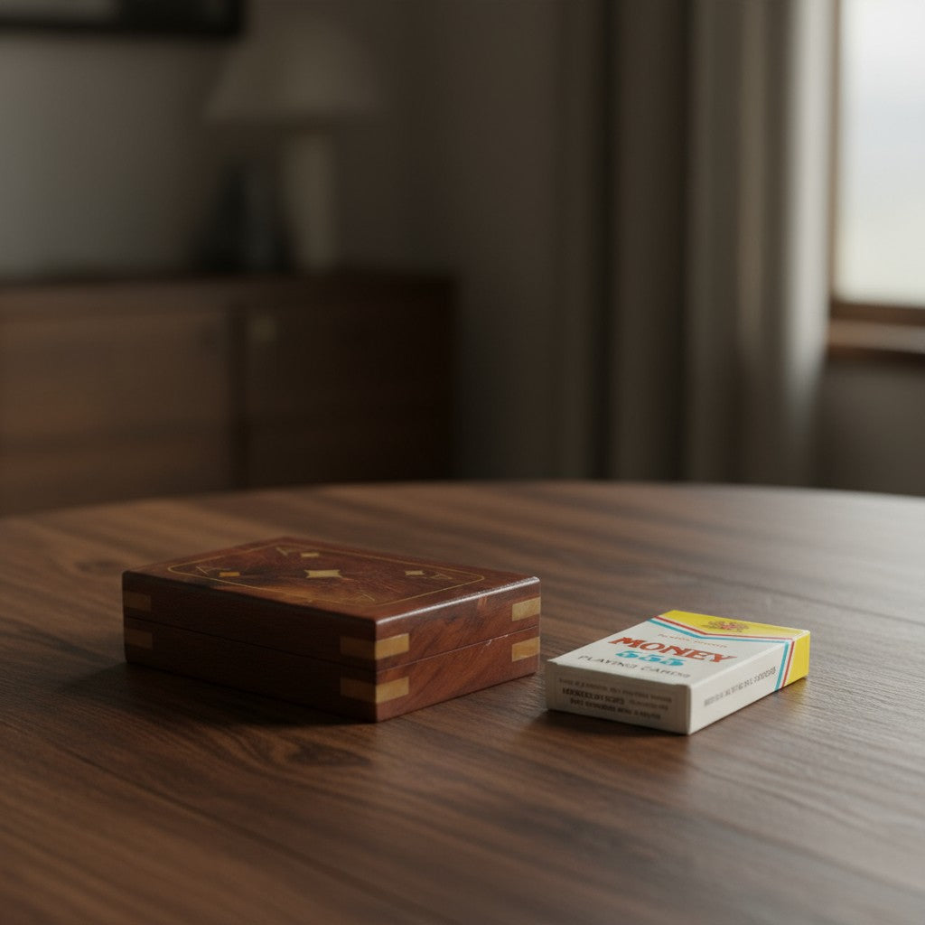 This classic favourite features a pack of cards neatly stored in a wooden case with a charming etched design. The case fits any standard pack of cards, making it perfect for keeping your cards safe and stylishly organized. A delightful addition to game nights or a thoughtful gift for card lovers!