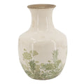 Featuring a soft green glazed finish with delicate floral detailing, this vase creates a calming and timeless look. The handcrafted braided handle adds texture and character, giving it a unique artisanal appeal. Whether styled with fresh blooms, dried arrangements, or displayed on its own, this vase delivers both style and versatility.