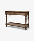 Featuring two drawers with brass-finished iron handles and a lower shelf ideal for dΓ©cor or storage baskets, this functional wall table combines timeless design with everyday practicality β making it a standout piece for cosy, inviting interiors.