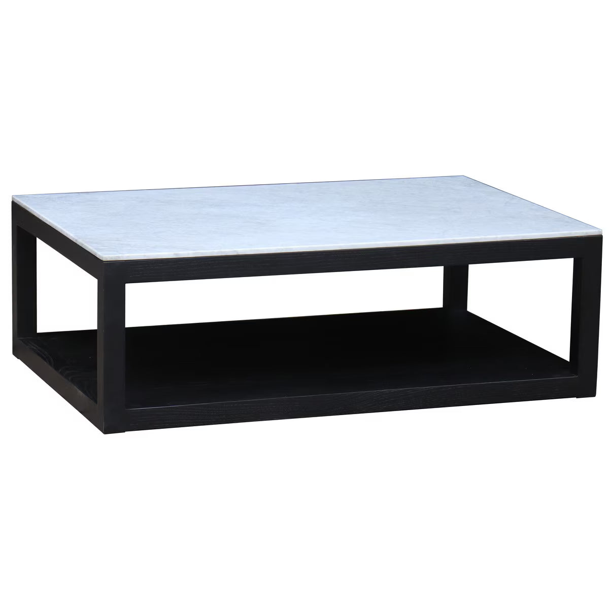 Description: Marble Top Coffee Table β Black Oak Base β Old Pine / White Marble