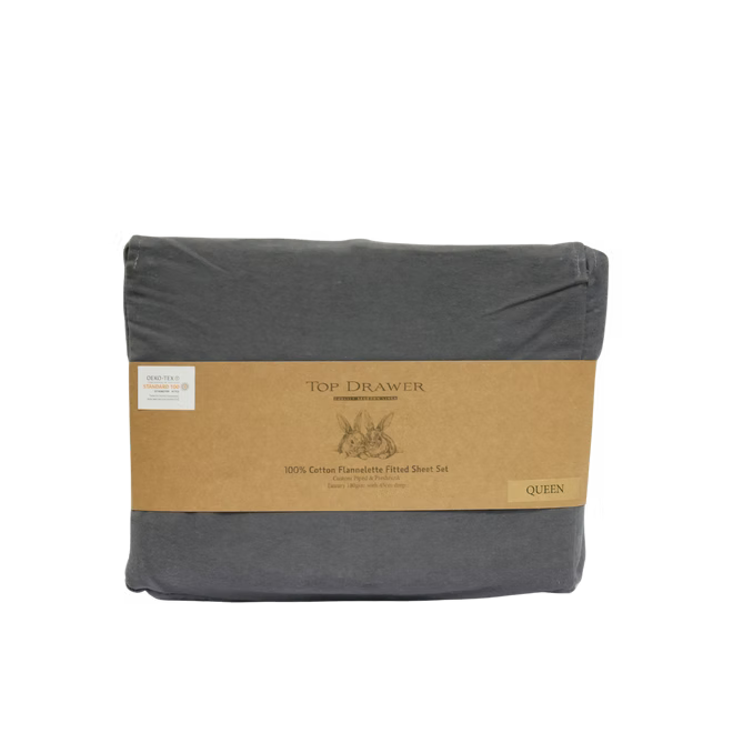 Turn chilly nights into cozy comfort with the Top Drawer Cotton Flannelette Sheet Set. Made from 100% cotton and finished at 180gsm, these sheets are brushed to perfection for a luxuriously soft, warm touch. A final brushing process helps reduce excess lint, giving you a smoother, longer-lasting sheet.