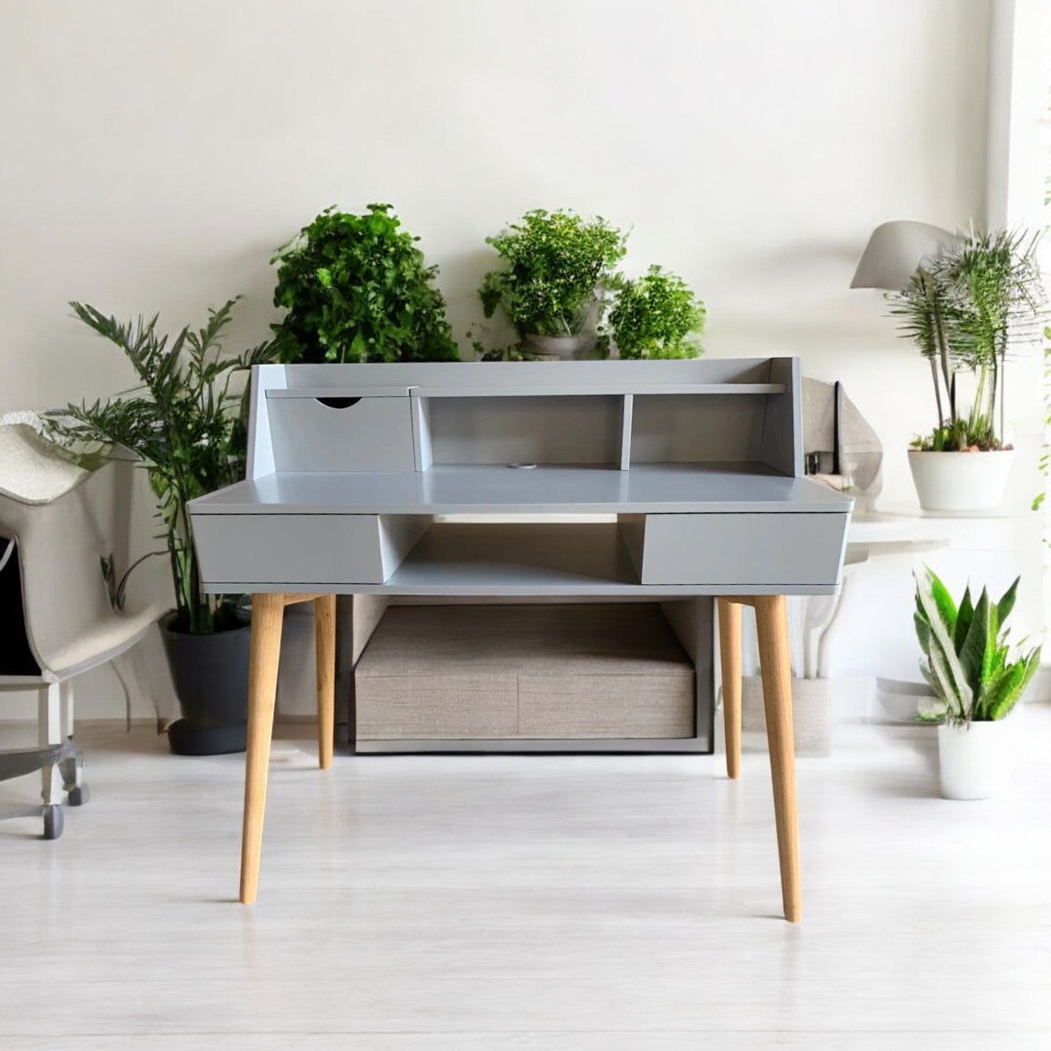 Upgrade your workspace with the Creativo Stylish Desk with 2 Drawers, a perfect blend of modern design and functionality. Featuring a sleek grey finish, solid wooden legs, and ample storage, this desk is ideal for home offices, study areas, or creative spaces.