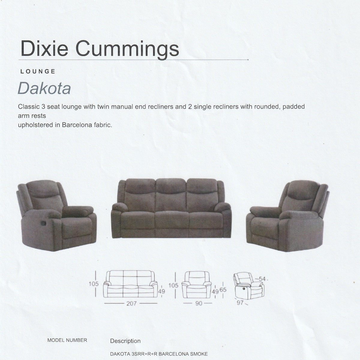 - 3-Seater Recliner: 2070L x 970D x 1030H mm