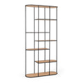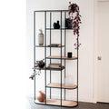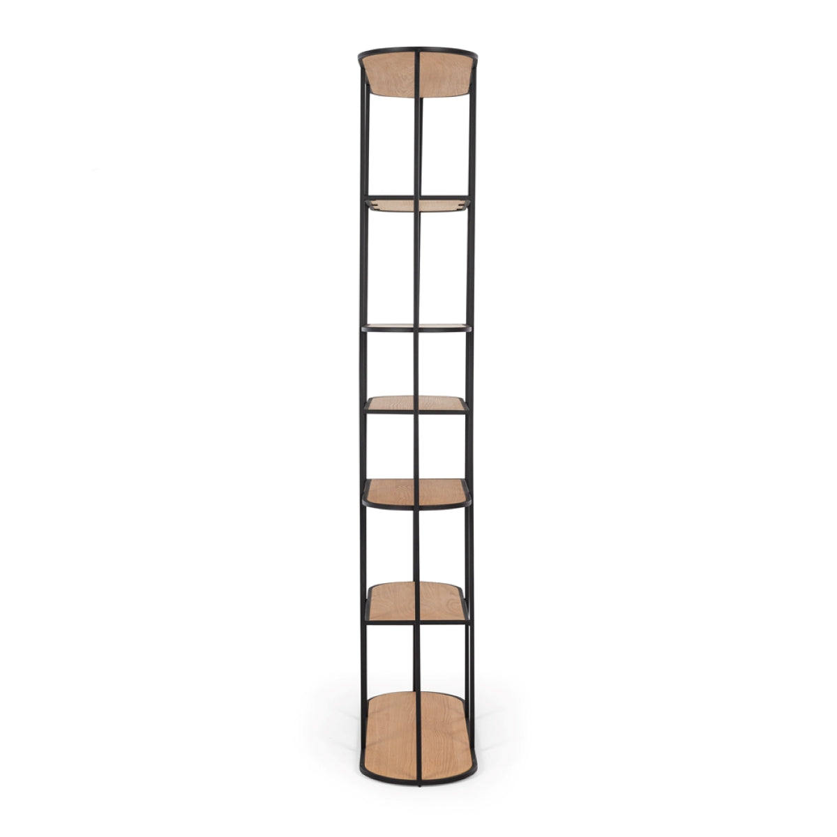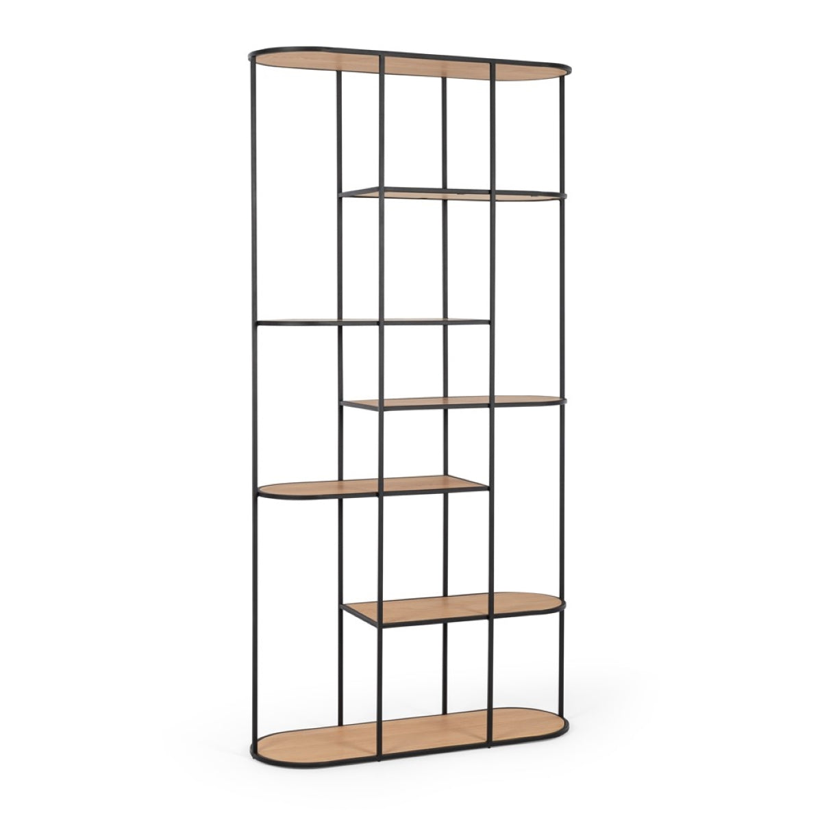 Construction Oak veneers, powder-coated metal, countersunk shelving