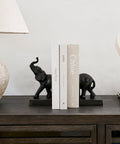 Add a touch of charm and sophistication to your shelves with the Elephant Bookends. Featuring a beautifully detailed antique black finish, these aluminium bookends are both decorative and functional, making them perfect for organising books or displaying on consoles and mantels.