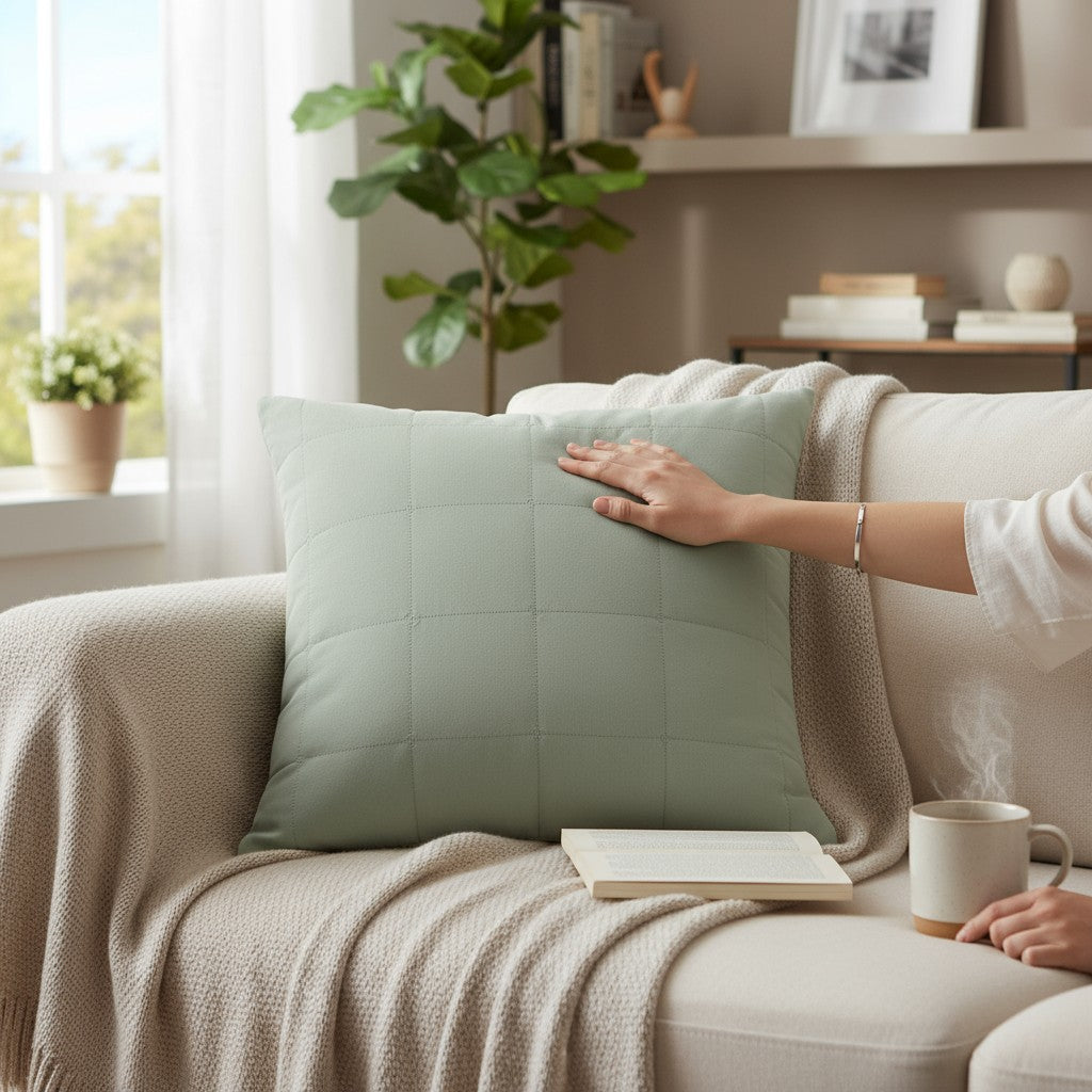 The Freya Sage cotton Euro is lightweight, soft, and effortlessly elegant — an ideal choice for warm summer nights. 🌿 Crafted from 100% cotton, it’s Sage for enhanced softness and features machine square quilting that adds beautiful visual texture to your bedroom. ✨