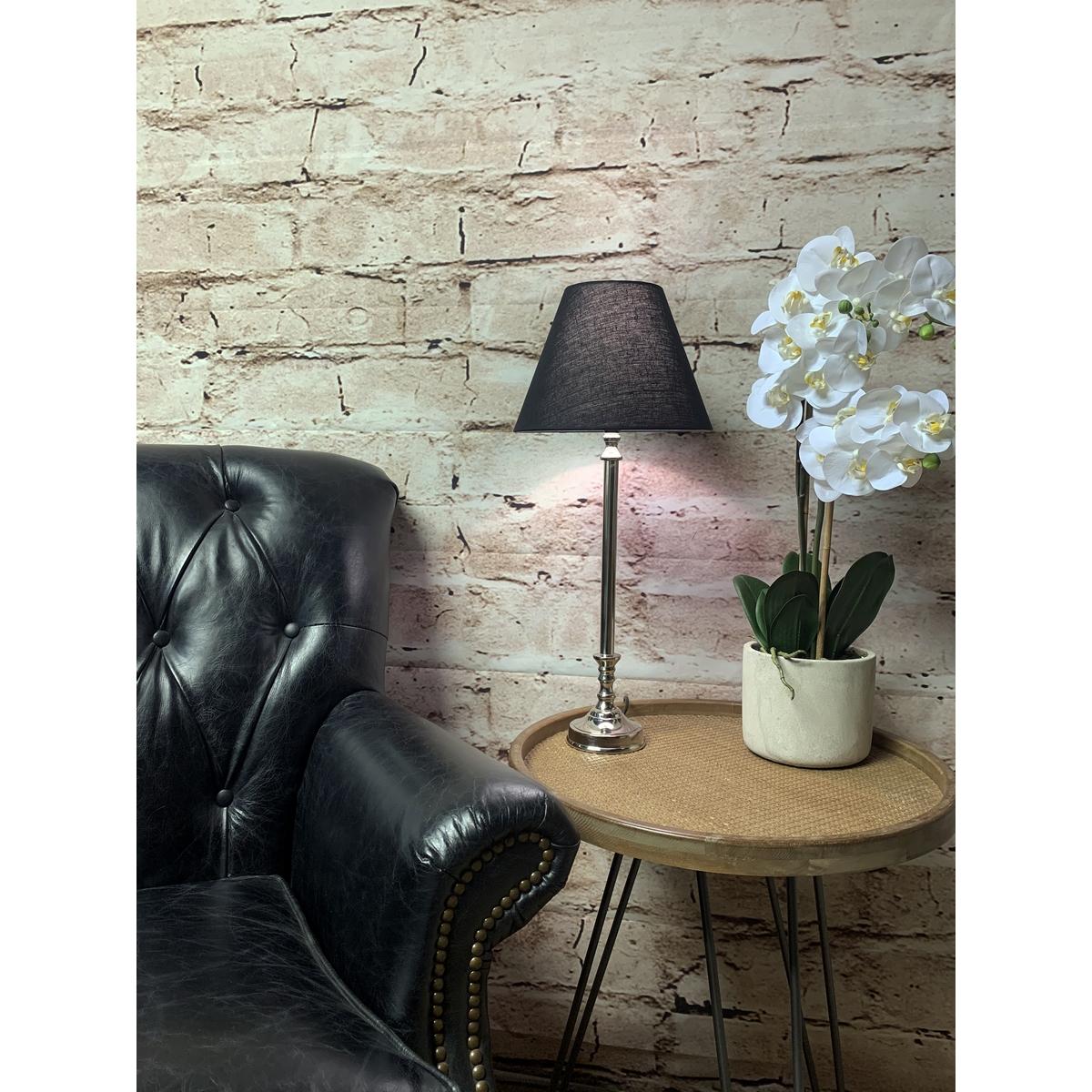 TABLE LAMP WITH SHADE (LAMP – NICKEL / SHADE - BLACK LINEN)