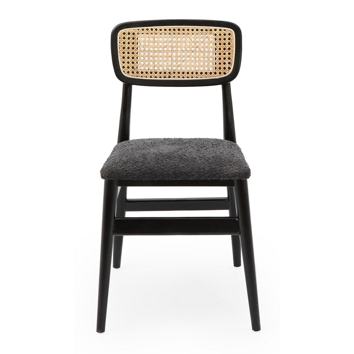 THE ELM BOSTON DINING CHAIR IN BLACK WITH BOUCLE FABRIC IS THE PERFECT ADDITION TO ANY DINING SPACE. THE CHAIR FEATURES A SLEEK AND MODERN DESIGN WITH CLEAN LINES AND A STURDY ELM FRAME. THE SEAT IS UPHOLSTERED IN A SOFT AND COZY BOUCLE FABRIC AND THE BACKSEAT IS RATTAN WHICH ADDS A TOUCH OF TEXTURE AND WARMTH TO YOUR DINING ROOM. THE ELM BOSTON DINING CHAIR WITH BOUCLE FABRIC IS THE PERFECT BLEND OF FORM AND FUNCTION. WHETHER YOU’RE LOOKING TO UPDATE YOUR DINING ROOM OR SIMPLY ADD A TOUCH OF MODERN FLAIR TO YOUR EXISTING DÉCOR, THIS CHAIR IS SURE TO IMPRESS.
