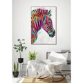 A BEAUTIFUL PAINTING OF A COLOURFUL ZEBRA, THIS STUNNING PAINTING WOULD SUIT ANY WALL SPACE.
