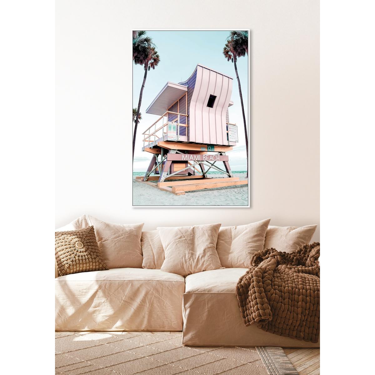 A BEAUTIFUL PAINTING OF A MIAMI BEACH HUT, THIS STUNNING PAINTING WOULD SUIT ANY WALL SPACE.