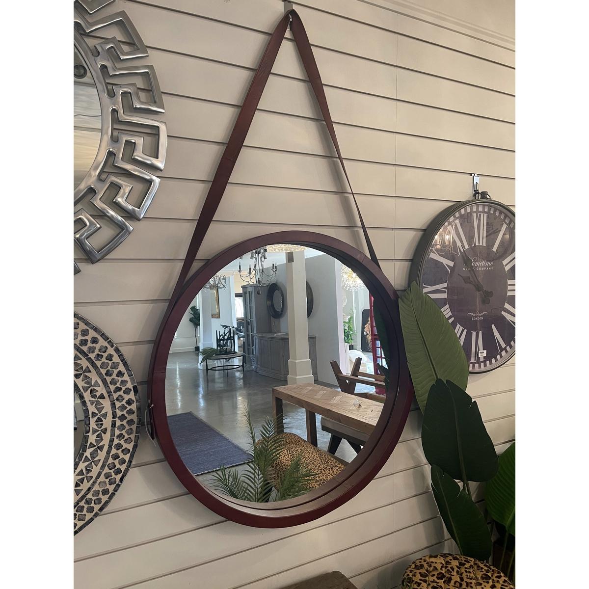 KC1099 (RFA) Round Leather Strap Mirror – Natural
