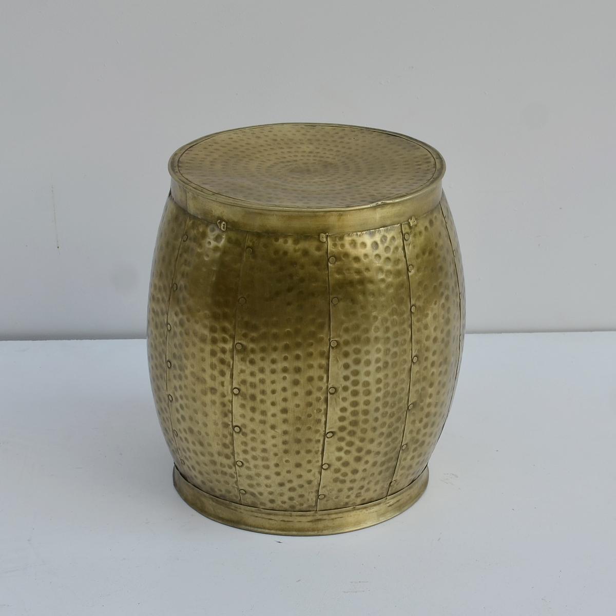 MATERIALS, THIS BRASS STOOL IS LIGHT, EASILY MOVABLE, IT LENDS ITSELF WELL TO