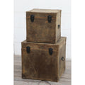 WITH A PLYWOOD FRAME AND METAL CLASPS AND HANDLES, THESE TRUNKS MAKE GREAT