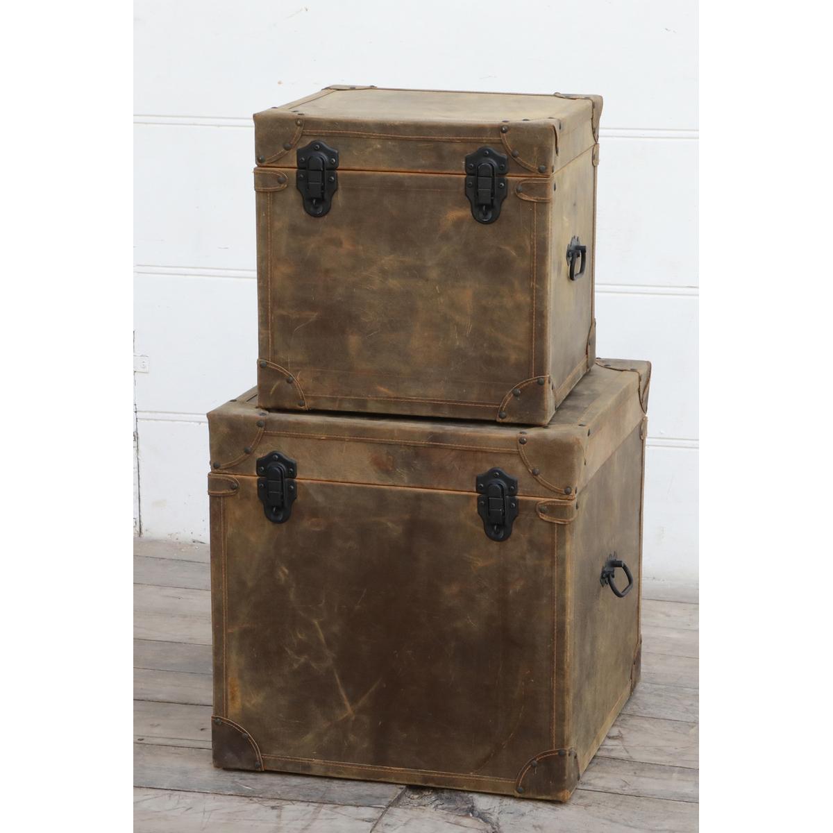 THIS SET OF 2 VINTAGE LEATHER TRUNKS WOULD LOOK GREAT IN ANY HOME. THEIR