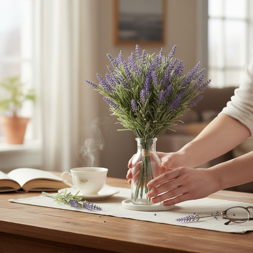 Bring the soothing charm of nature indoors with the Lavender Bouquet. Featuring realistic blooms in calming natural tones, this beautifully arranged bouquet adds a touch of freshness and serenity to any space β perfect for styling on consoles, dining tables, or bedside accents. πΏπ