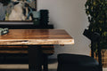 Bring natural character into your home with the Live-Edge Range. Featuring rich Blackwood veneer tops, sculpted live-edge detailing, and bold matte-black steel legs, each piece showcases warm timber grain and organic contours that make every item truly unique.