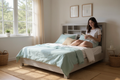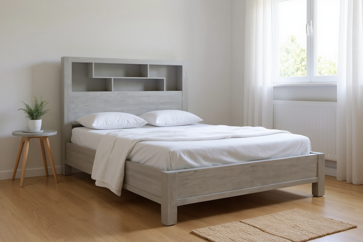 Queen Size Bed Frame with Bookcase: L2100 x W1680 x H1230/580mm (Head/Foot)